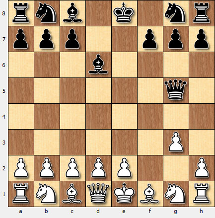 Whites pawn "P" on "h" takes "x" blacks Queen on g3.